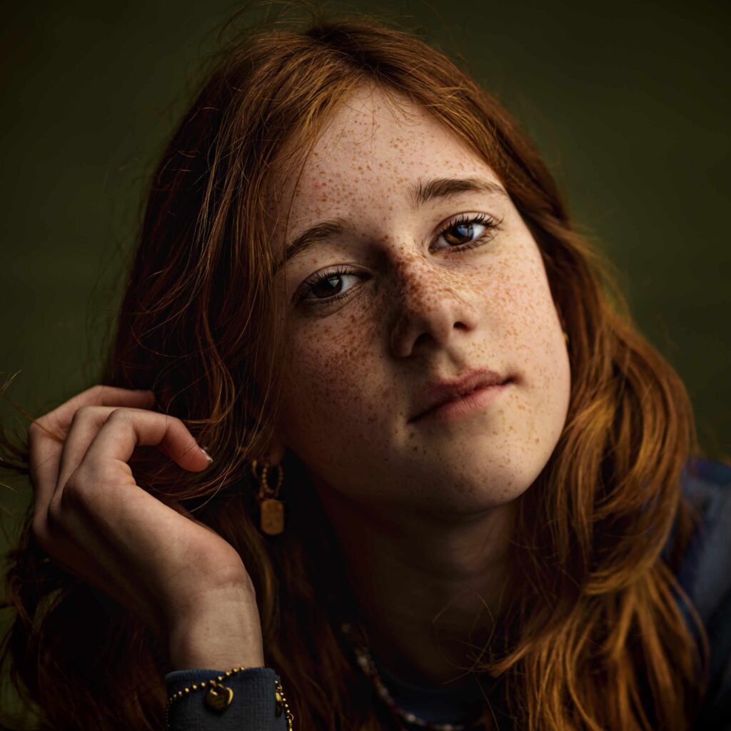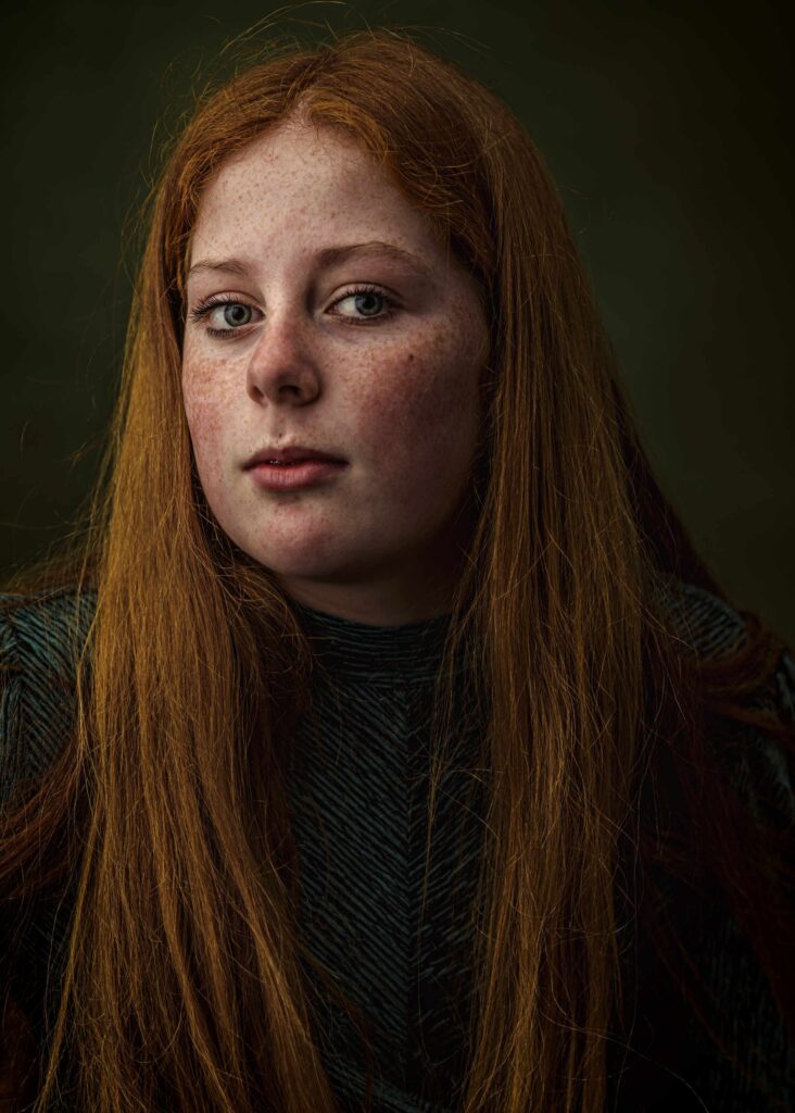 Het begon allemaal met een oproepje om een nieuwe handgeschilderde, groene achtergrond uit te testen. Het leek mij leuk om een roodharige met sproeten te fotograferen. Meer dan duizenden reacties en honderden aanmeldingen volgde, wowww een project is geboren 🙂